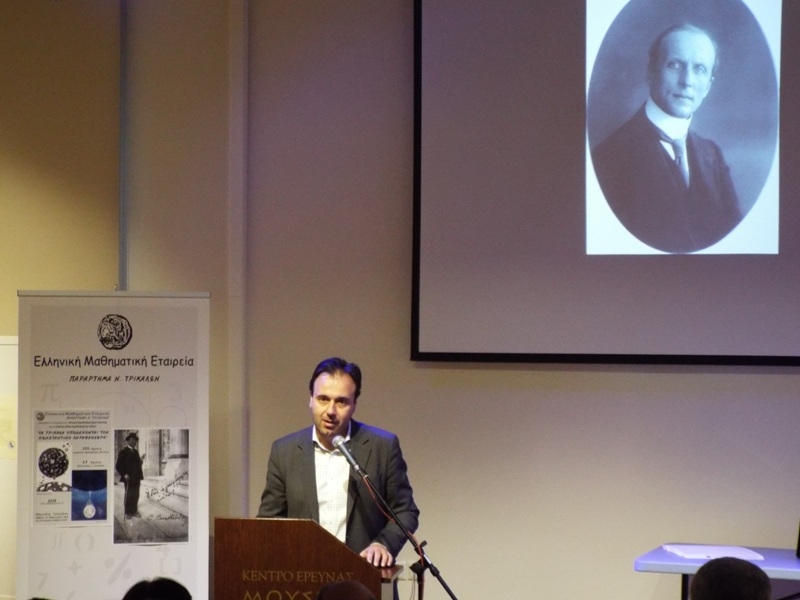 Ο πρόεδρος του παραρτήματος τρικύκλων κ. Κεφάλας αναφέρθηκε στις δράσεις για το τρέχον έτος και στη σημασία της έκθεσης, ενώ ο προϊστάμενος της Δ/νσης Πρωτοβάθμιας εκπαίδευσης ν, Τρικάλων κ. Χρ. Μπουλούμπασης αναφέρθηκε στη σημαντικότητα της μαθηματικής επιστήμης., Περισσότερα στοιχεία για την επιστήμη και τον Καραθεοδωρή έδωσε ο σχολικός σύμβουλος μαθηματικών κ. Δημήτριος Ντρίζος και ακολούθησαν οι βραβεύσεις, στην κατάμεστη αίθουσα εκδηλώσεων του Μουσείου Τσιτσάνη. Σε αυτή, η μοναδική σκέψη και οι δημοσιεύσεις του Καραθεοδωρή, η σχέση του με τον Αϊνστάιν, στοιχεία από την πολύπλευρη προσωπικότητά τα του και την προσφορά του στην Επιστήμη, εκτίθενται μέχρι τις 4 Μαρτίου 2018. Την έκθεση υποστηρίζει η Μουσειολόγος – Μουσειοπαιδαγωγός Χαρά Μαρκουλάκη (υπεύθυνη Εκπαιδευτικών Προγραμμάτων του Μουσείου Καραθεοδωρή) που θα αναλαμβάνει την περιήγηση των επισκεπτών.