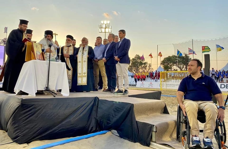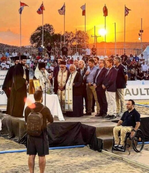 Αλγεινή εντύπωση προκαλεί η παραπάνω φωτογραφία με τον Παραολυμπιονίκη και Πρόεδρο της Παραολυμπιακής Επιτροπής, Γιώργο Καπελλάκη, να κοιτάζει κάτω από μια εξέδρα… την Ελλάδα της ντροπής… στα εγκαίνια του Karteros Beach Sports Center.