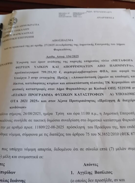 “Καταγγελία προς τς δημόσιες αρχές για το Δήμο φαρκαδονας