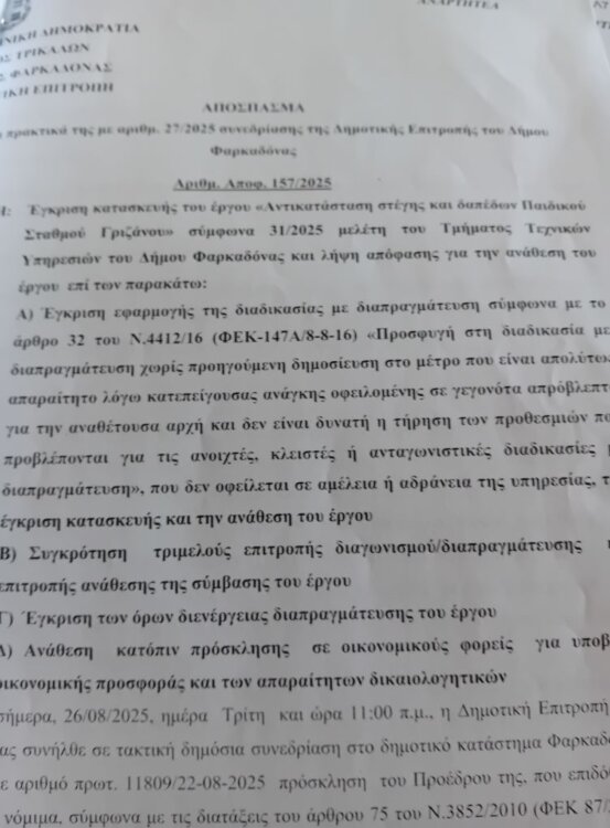 Μάλιστα η δημοτική αρχή Αγναντή επικαλείται “έκτακτη ανάγκη”… για ζημιά από τον σεισμό του 2021!!!