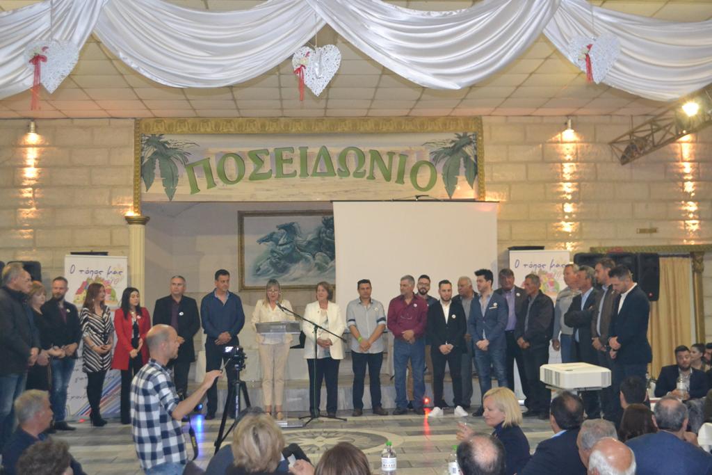 Η εκδήλωση διοργανώθηκε στην έδρα του Δήμου το βράδυ του Σαββάτου στην αίθουσα του κοσμικού κέντρου «Ποσειδώνιο και άνοιξε με την τέλεση Αγιασμού και συνεχίστηκε με χαιρετισμό από το δικηγόρο κ. Γ. Μιζάκη, που αναφέρθηκε στο πρόσωπο της υποψηφίας δημάρχου αλλά και στην πλούσια προσφορά στην αυτοδιοίκηση.