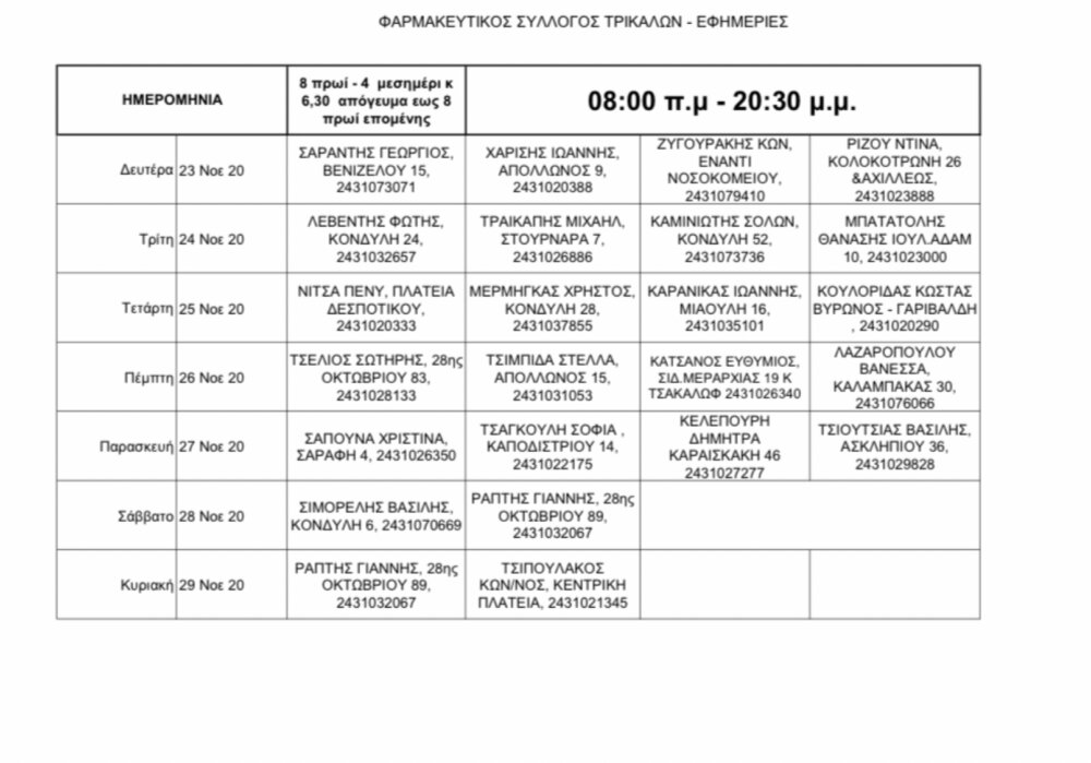Οι εφημερίες των φαρμακείων στα Τρίκαλα σήμερα και αύριο