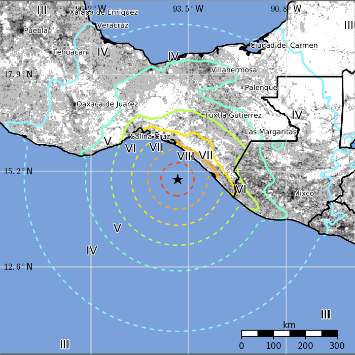 Στην πόλη Χουτσιτάν στην Πολιτεία Οαχάκα, μέρος του δημαρχείου, ένα ξενοδοχείο, ένα μπαρ και άλλα κτίρια μετατράπηκαν σε ερείπια.