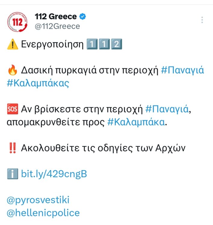 Φωτιά στην Παναγία Καλαμπάκας ξέσπασε το απόγευμα και σήμανε συναγερμό σε Πυροσβεστική και δήμο.