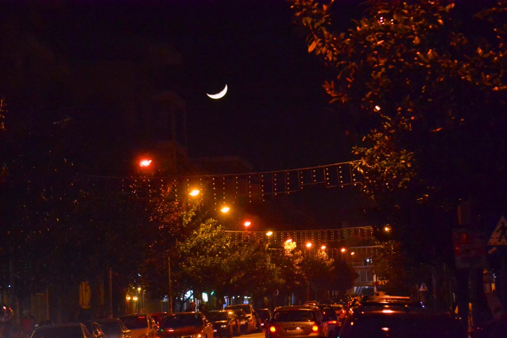 Χλωμά… όσο δυνατά και αν είναι τα φώτα της πόλης… και ριζωμένα στη γης, μπρος στη μαγεία του φεγγαριού, που αντανακλά, το δικό της φως. Το επιστρέφει με τις αγωνίες, τα άγχη, τους έρωτες, το γέλιο και το κλάμα. Γελάει με την ματαιοδοξία μας που θέλουμε να την κάνουμε αιωνιότητα, που πιστεύουμε πως και αυτό το ίδιο, μπορούμε να το ξεκρεμάσουμε από τον ουρανό, να το τεμαχίσουμε, να το κάνουμε οικόπεδα… Χαμογελά ειρωνικά με το ανάστημα που σηκώνουμε στην απεραντοσύνη του σύμπαντος, χωρίς να αντιληφθούμε πως όλα είναι μόνο λίγες μικρές στιγμές…
