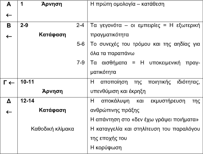 8) Το κάπως απαισιόδοξο κλίμα του ποιήματος και μια μορφή αδιεξόδου που δηλώνει το τρίστιχο 12-14.