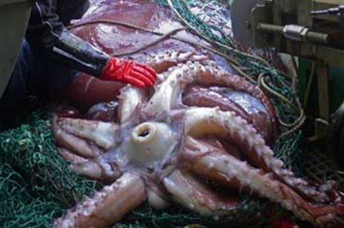 Το τεράστιο μαλάκιο, άσπρο και κόκκινο, κολυμπούσε για ώρες κοντά στην επιφάνεια πριν επιστρέψει στα μεγάλα βάθη όπου ζει κανονικά. Βιντεοσκοπήθηκε από ένα αυτόνομο υποβρύχιο αλλά και από έναν δύτη που κυριολεκτικά κατάφερε να το αγγίξει.