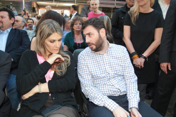 Ο υποψήφιος ευρωβουλευτής Νίκος Ανδρουλάκης συνομιλεί με την υποψήφια ευρωβουλευτή Εύα Καϊλή στην κεντρική προεκλογική συγκέντρωση της Ελιάς – Δημοκρατικής Παράταξης, Τετάρτη 21 Μαίου 2014. Πραγματοποιήθηκε στο Αίθριο του Μουσείου Μπενάκη η κεντρική προεκλογική συγκέντρωση της Ελιάς – Δημοκρατικής Παράταξης με ομιλητή τον πρόεδρο του ΠΑΣΟΚ Ευάγγελο Βενιζέλο. ΑΠΕ ΜΠΕ/ΑΠΕ ΜΠΕ/ΠΑΝΤΕΛΗΣ ΣΑΪΤΑΣ