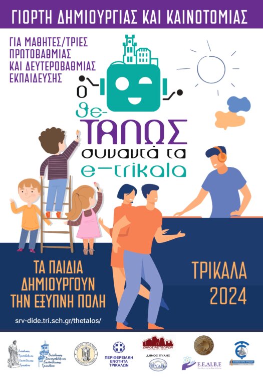 Οι Διευθύνσεις Πρωτοβάθμιας και Δευτεροβάθμιας Εκπαίδευσης Τρικάλων σε συνεργασία με την Περιφέρεια Θεσσαλίας- Περιφερειακή Ενότητα Τρικάλων, τους Δήμους Τρικκαίων, Μετεώρων, Πύλης, Φαρκαδόνας, το Εμπορικό Επιμελητήριο Τρικάλων και τον Εμπορικό Σύλλογο Τρικάλων, υλοποιούν τη δράση «Ο Θε-ΤΑΛΩΣ συναντά τα e- trikala» μια γιορτή δημιουργίας και ψηφιακών δεξιοτήτων για μαθητές/τριες Πρωτοβάθμιας και Δευτεροβάθμιας Εκπαίδευσης, όπου ανθρωπιστικές επιστήμες συναντούν την εκπαιδευτική ρομποτική, τις εφαρμογές STEAM, τα εικαστικά, τη μουσική, τον χορό καθώς και όλες τις τέχνες. Η εν λόγω δράση θέλει να δώσει ένα βήμα σε όλους/ες τους/τις μαθητές/τριες της Περιφερειακής Ενότητας Τρικάλων να εκφραστούν, να διασκεδάσουν, να δημιουργήσουν και να παρουσιάσουν τις προτάσεις τους για το πώς σκέφτονται την έξυπνη πόλη.
