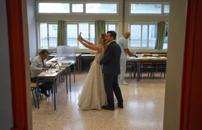 Ένα ζευγάρι νεονύμφων, οι οποίοι μετά το γαμήλιο γλέντι πήγαν να ψηφίσουν συνάντησε νωρίς το πρωί ο Γιώργος Τσελίκας.