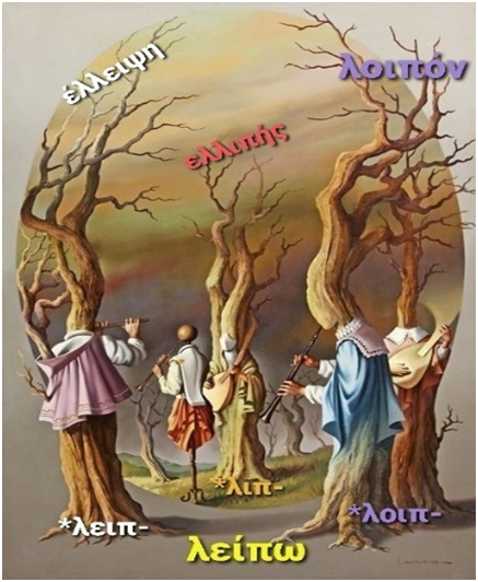 Στις παραπάνω φράσεις ενδεικτική είναι η χρήση τύπων του λείπω που παράγονται από το θέμα λιπ- (Αόριστος, έλιπον – ελιπόμην).