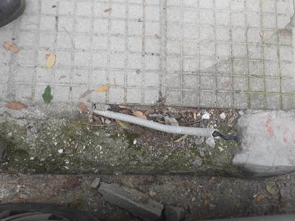 Στα φανάρια στην οδό Συγγρού βγαίνει από το πεζοδρόμιο ένα κομμάτι εκτεθειμένου καλωδίου ηλεκτρικού ρεύματος με λίγη ταινία μπροστά, που προφανώς αν έχει ρεύμα… δεν υπάρχει περίπτωση αυτή η μόνωση να προφυλάξει όποιον πέσει πάνω του…