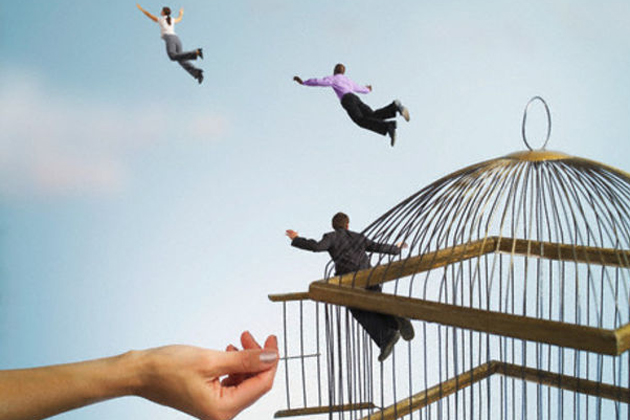 People released from birdcage — Image by © CJ Burton/Corbis