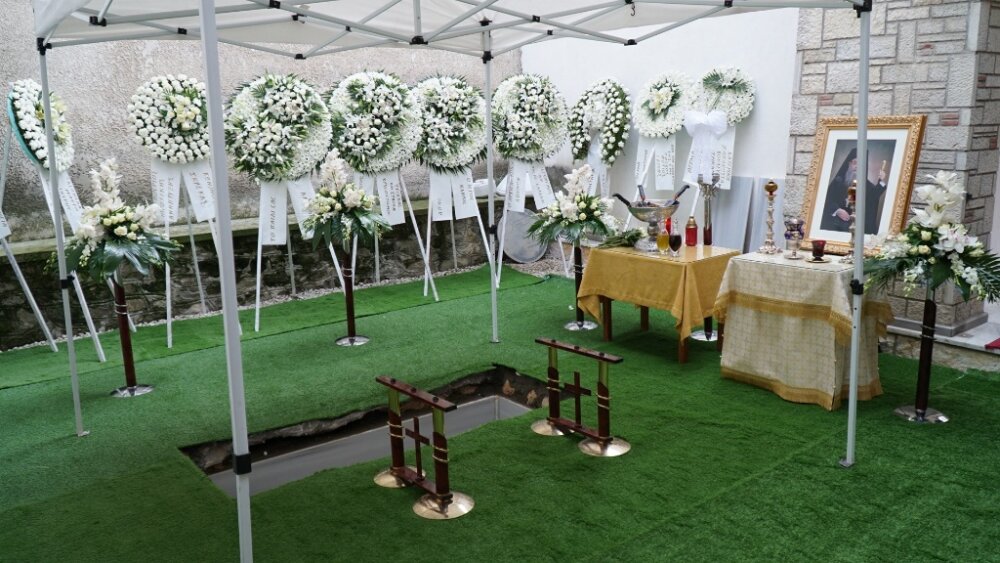 Στις 12 ακριβώς το μεσημέρι, σύμφωνα με τα προβλεπόμενα εκ των υγειονομικών αρχών μέτρα προστασίας λόγω του κορωνοϊού Covid-19, εκίνησε η εξόδιος ακολουθία προεξάρχοντος του εκπροσώπου της Ιεράς Συνόδου της Εκκλησίας της Ελλάδος Σεβασμιωτάτου Μητροπολίτου Διδυμοτείχου, Ορεστιάδος και Σουφλίου κ. Δαμασκηνού πλαισιωμένου από τους Σεβασμιωτάτους Μητροπολίτες Θεσσαλιώτιδος και Φαναριοφερσάλων κ. Τιμοθέου και Σταγών και Μετεώρων κ. Θεοκλήτου, του Γενικού Αρχιερατικού Επιτρόπου της Ιεράς Μητροπόλεως Τρίκκης και Σταγών Αιδεσιμολογιωτάτου Πρωτοπρεσβυτέρου Λάμπρου Κολώνα και του Ιεροκήρυκος της Ιεράς μας Μητροπόλεως Πανοσιολογιωτάτου Αρχιμανδρίτου Αχιλλίου Τσούτσουρα.