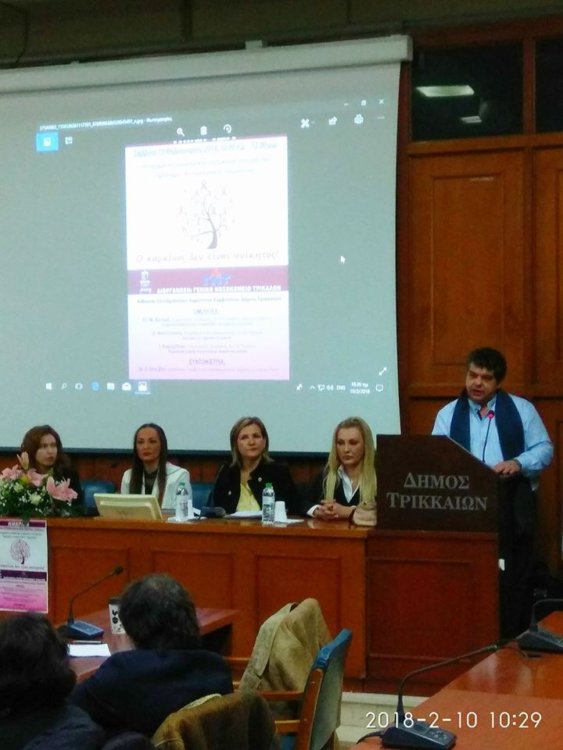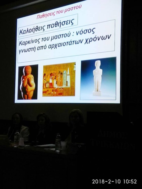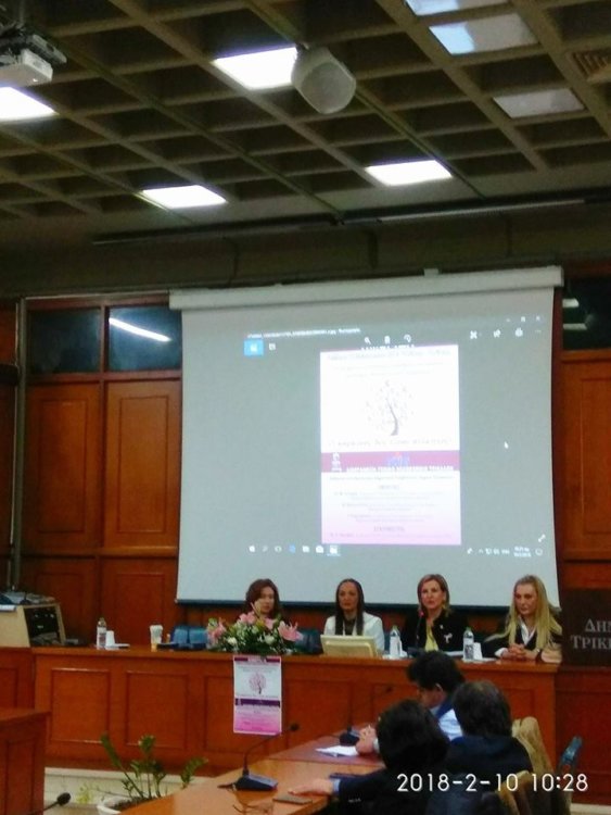 Πραγματοποιήθηκε χθες Σάββατο 10 Φεβρουαρίου 2018 η ημερίδα του Γενικού Νοσοκομείου Τρικάλων με θέμα τον καρκίνο του μαστού, την πρόληψη, την αντιμετώπιση και τη θεραπεία στην κατάμεστη Αίθουσα Συνεδριάσεων του Δήμου.