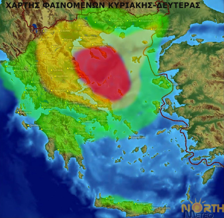 3. Επισημαίνεται ότι τα φαινόμενα κατά τόπους στην κεντρική Μακεδονία (κυρίως στην Πιερία, Χαλκιδική και Θερμαϊκό), τη Θεσσαλία, τις Σποράδες και την Εύβοια θα είναι ιδιαιτέρως ισχυρά.