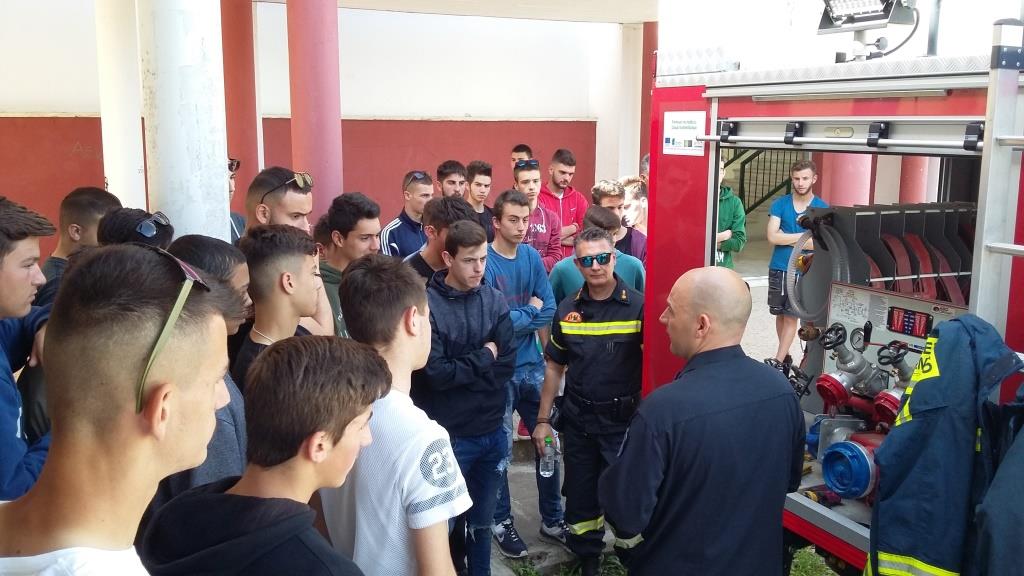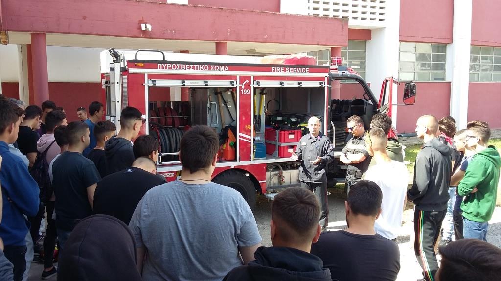 Στη συνέχεια, οι μαθητές του τομέα Μηχανολογίας είχαν την δυνατότητα να δουν από κοντά και να συζητήσουν τις επιχειρησιακές και τεχνολογικές δυνατότητες που έχει ένα Πυροσβεστικό όχημα με την βοήθεια του αρχιπυροσβέστη κ. Ιωάννη Καραγιώργου και της πυροσβέστη κας. Σταυρούλας Γαρούφου,ενώ τέλος έγινε επίδειξη κατάσβεσης πυρκαγιάς στην οποία πήραν μέρος οι μαθητές του σχολείου.