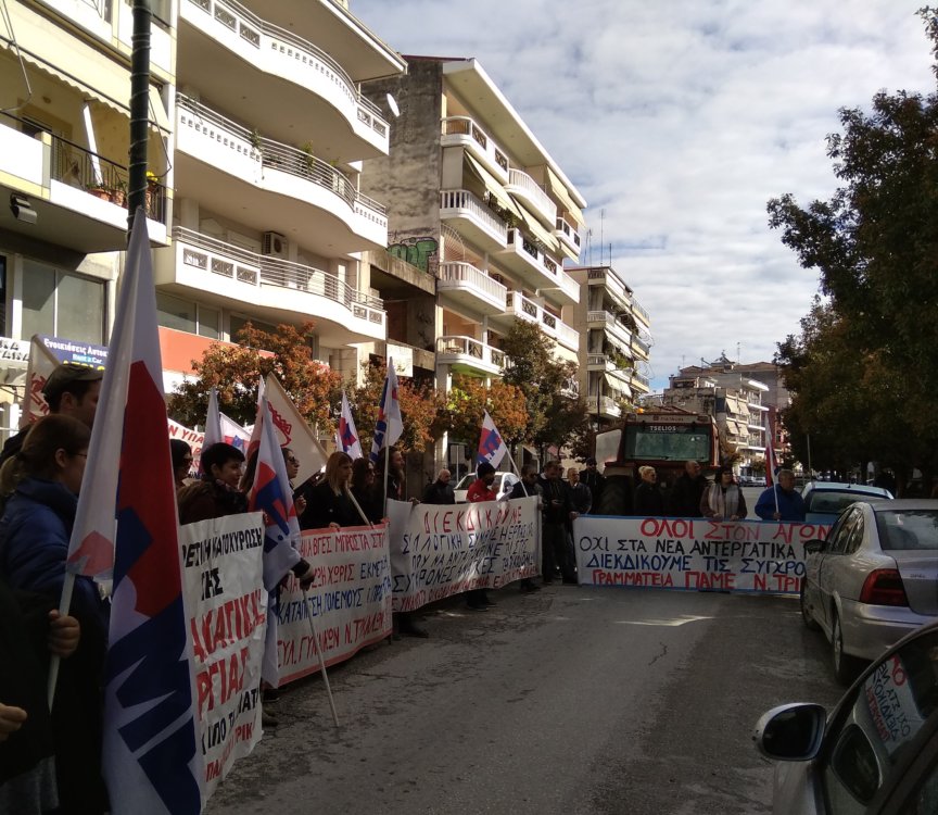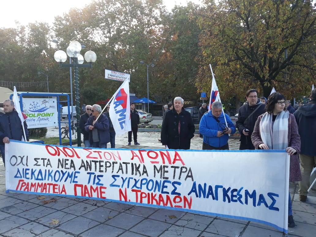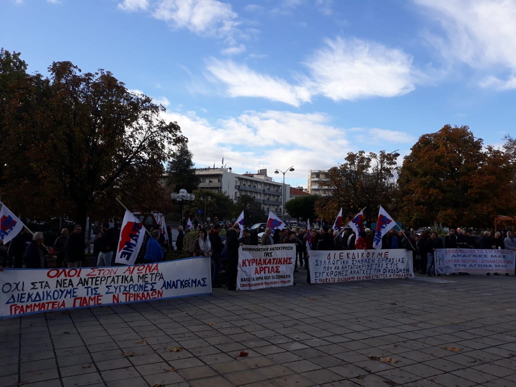 Το ραντεβού δόθηκε στην κεντρική πλατεία των Τρικάλων και διατράνωσαν την αντίθεση τους στην εφαρμοζόμενη μνημονιακή πολιτική και τα νέα αντιεργατικά μέτρα.