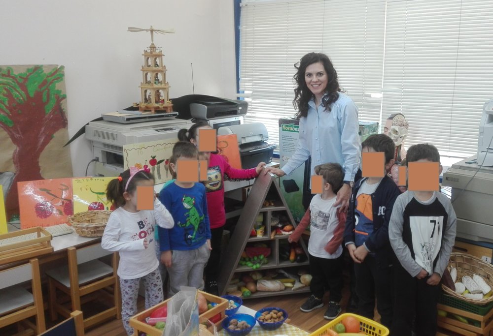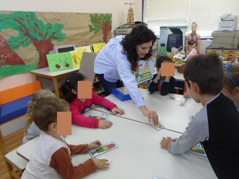 Ακολούθησαν, δύο διαδραστικά παιχνίδια, «Το χτίσιμο της Πυραμίδας της Μεσογειακής Διατροφής» και «το Φανάρι της Διατροφής», με στόχο να μάθουν τα παιδιά πόσο συχνά μπορούν να καταναλώνουν τα τρόφιμα και γενικότερα, την έννοια της ισορροπίας, της ποικιλίας και του μέτρου στη διατροφή τους.