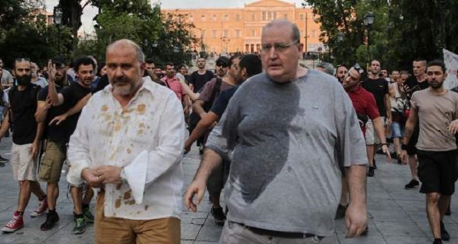 Σύμφωνα με πληροφορίες η ένταση σημειώθηκε όταν εμφανίστηκε ο Νίκος Φίλης. Ωστόσο τα πνεύματα οξύνθηκαν περαιτέρω όταν εμφανίστηκε και ο Νίκος Ξυδάκης. Οι δυο τους δέχθηκαν λεκτικές επιθέσεις ενώ εκτοξεύθηκαν εναντίον τους νερά και καφέδες.