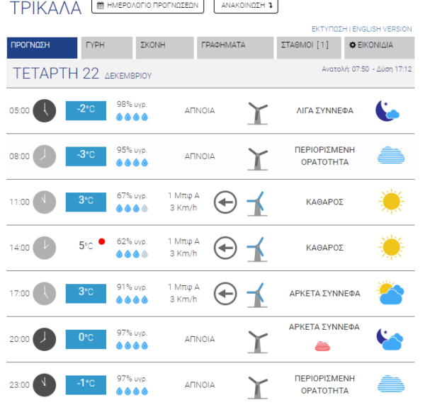 Νεφώσεις με πρόσκαιρα, σποραδικά φαινόμενα αναμένονται την Τετάρτη 22 Δεκεμβρίου 2021. Παγετός ακόμη και σε πεδινές περιοχές της κεντρικής και βόρειας χώρας έως το πρωί. Άνεμοι έως 5 μποφόρ στο Αιγαίο.