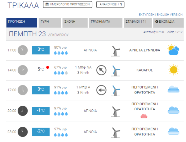 Νεφώσεις με πρόσκαιρα τοπικά φαινόμενα σε Αιγαίο, ανατολικά και νότια ηπειρωτικά αναμένονται την Πέμπτη 23 Δεκεμβρίου 2021. Χαμηλές θερμοκρασίες. Άνεμοι έως 6 μποφόρ στο Νοτιοανατολικό Αιγαίο.