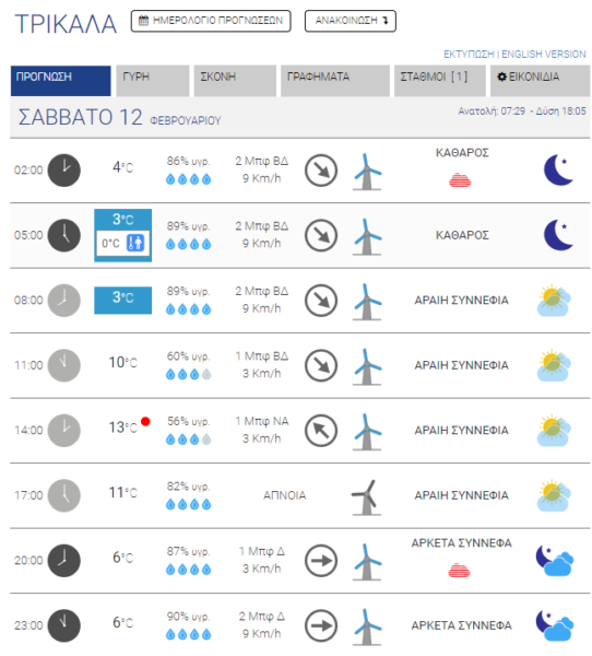 Πιο αναλυτικά, το Σάββατο 12 Φεβρουαρίου 2022, σε ολόκληρη τη χώρα αρχικά αναμένονται καλές καιρικές συνθήκες με λίγες νεφώσεις. Προοδευτικά οι νεφώσεις θα αυξηθούν και μετά το μεσημέρι θα εκδηλωθούν τοπικές βροχές κυρίως, στην κεντρική, ανατολική και βόρεια χώρα και σε νησιωτικά τμήματα του Αιγαίου. Λίγα χιόνια θα πέσουν στα κεντρικά και βόρεια ορεινά. Τη νύχτα και κυρίως νωρίς το πρωί η ορατότητα σε πολλές περιοχές θα είναι περιορισμένη και θα σχηματιστούν ομίχλες. Παγετός θα σημειωθεί στα κεντρικά και βόρεια ηπειρωτικά τη νύχτα και νωρίς το πρωί.