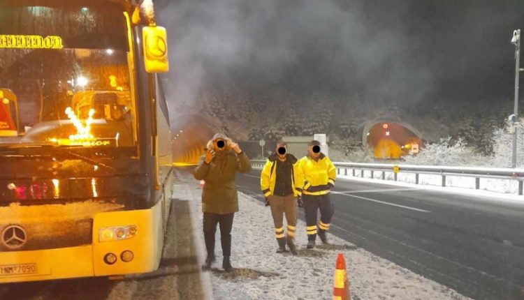 Αποκλεισμένοι έξω στη χιονοθύελλα καταγγέλλουν ότι αφέθηκαν δεκάδες επιβάτες από τους εργαζόμενους στα διόδια του Μαλακασίου, οι οποίοι αποβιβάστηκαν από το λεωφορείο λόγω εκδήλωσης φωτιάς στην τουρμπίνα του οχήματος και περίμεναν για πάνω από μια ώρα απροστάτευτοι από τα ακραία καιρικά φαινόμενα.