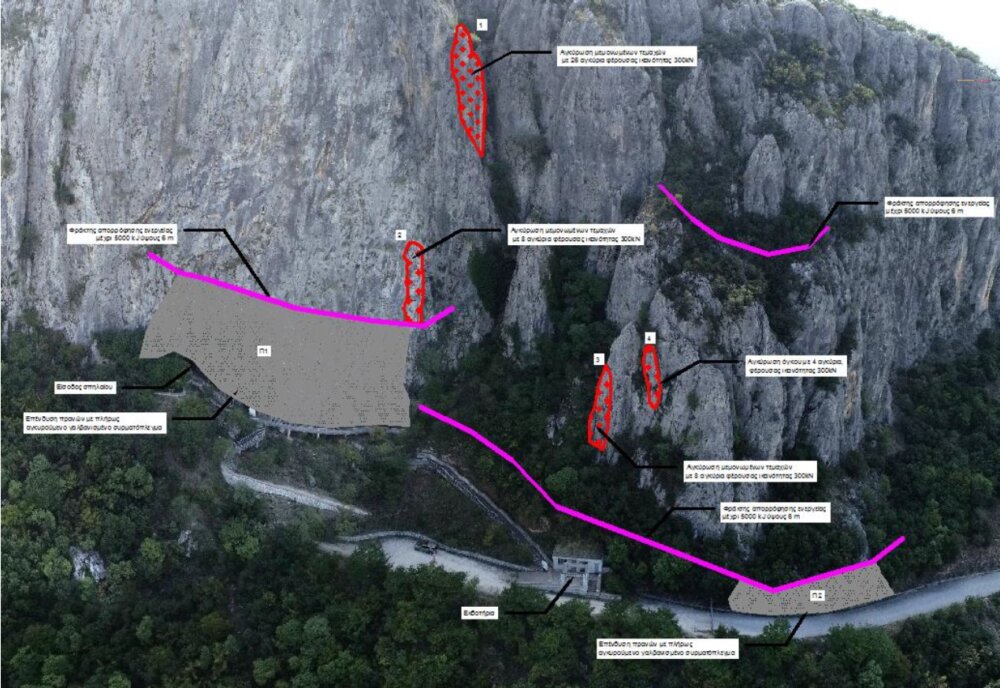 -Τοποθέτηση αγκυρωμένου πλέγματος επένδυσης των βραχωδών πρανών