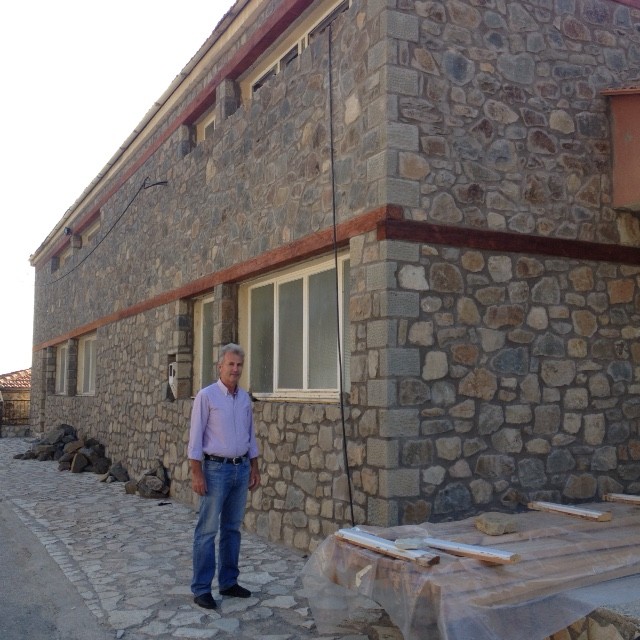 Η ανάπλαση έχει σαν σκοπό τόσο την αισθητική ένταξη του κτιρίου στον παραδοσιακό χαρακτήρα του κέντρου του οικισμού, όσο και την κτιριακή διαμόρφωση που θα προσφέρει λειτουργικότητα. Όσον αφορά στην ανάπλαση των εξωτερικών όψεων: Η βόρεια πλευρά και η δυτική πλευρά του κτιρίου θα κτιστούν με λιθοδομή ως το ύψος του πρώτου ορόφου. Το τέλος της λιθοδομής, ορίζεται με τη χρήση οριζόντιου ξύλινου δεσίματος, που θα παραπέμπει στην παραδοσιακή ξυλοδεσιά αλλά και είναι απαραίτητο λόγω του μεγάλου ύψους της όψης. Η ελεύθερη επιφάνεια στο υπόλοιπο ύψος , καθώς και οι παρειές και οι κολώνες της επιστέγασης του εξώστη θα χρωματιστούν σε χρώμα ανάλογο με της λιθοδομής και έπειτα από συνεννόηση με την Επιβλέπουσα Υπηρεσία.