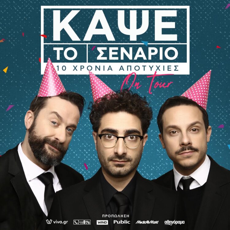 Με πάνω από 800 παραστάσεις στο ενεργητικό τους, διαδικτυακά special και sold out περιοδείες, ο Λάμπρος Φισφής, ο Δημήτρης Μακαλιάς και ο Ζήσης Ρούμπος παρουσιάζουν ένα αυτοσχεδιαστικό comedy show με καταιγιστικό ρυθμό, καμμένο χιούμορ και ότι άλλο αποφασίσει το κοινό. Φέτος μάλιστα, γιορτάζουν και τα 10 χρόνια από την ίδρυση της ομάδας με μια επετειακή περιοδεία σε πολλές πόλεις της Ελλάδας. Την 1η Οκτωβρίου το «Κάψε το Σενάριο» πάει στα αγαπημένα Τρίκαλα, στο Πνευματικό Κέντρο στις 21:15.