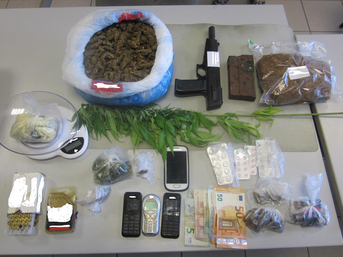 Συνελήφθησαν, χθες (02-09-2017) το μεσημέρι στον Παλαμά Καρδίτσας, από αστυνομικούς του Τμήματος Δίωξης Ναρκωτικών Λάρισας, τρεις ημεδαποί, ηλικίας 38, 44 και 47 ετών, σε βάρος των οποίων σχηματίστηκε δικογραφία για τα, κατά περίπτωση, αδικήματα της παράβασης του νόμου περί ναρκωτικών, της παράβασης του νόμου περί όπλων και της παραβίασης του Τελωνειακού Κώδικα.