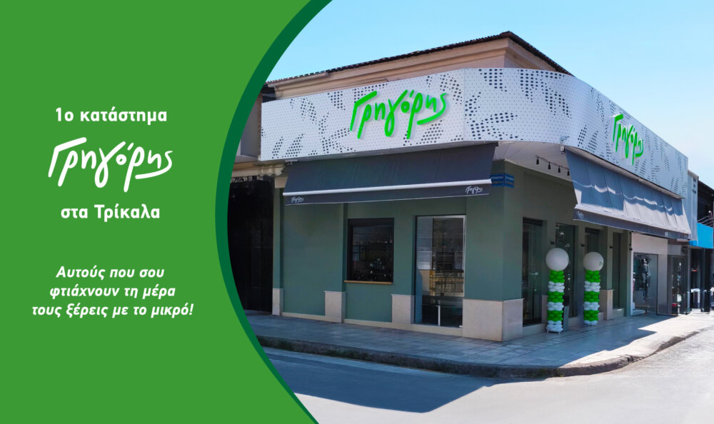 Ο Γρηγόρης ανοίγει το πρώτο του κατάστημα στα Τρίκαλα, επεκτείνοντας το δίκτυό του στη Θεσσαλία.