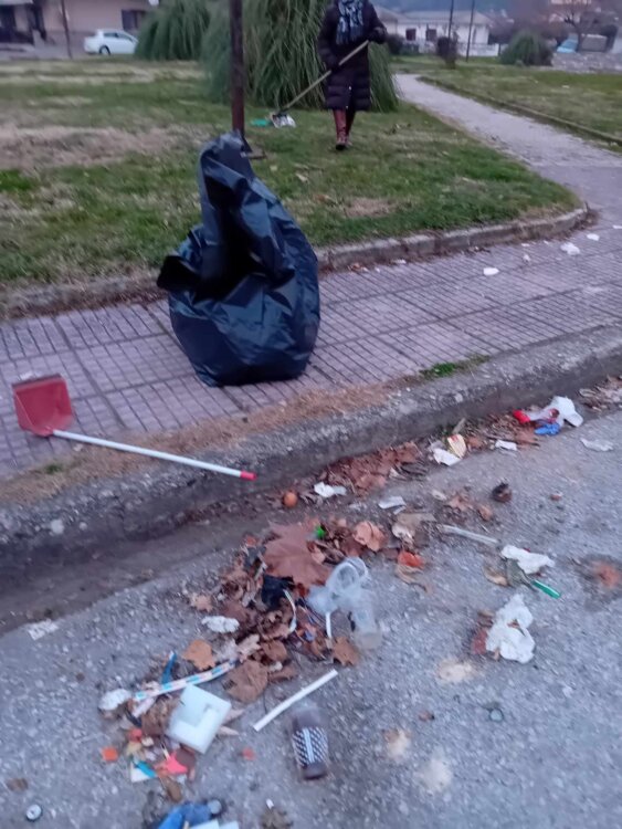 Οι φωτογραφίες είναι από την περιοχή Αγίου Οικομένιου όπου οι κάτοικοι πήραν μόνοι τις σκούπες παραμονή Πρωτοχρονιάς και έκαναν την… δουλειά του δήμου.