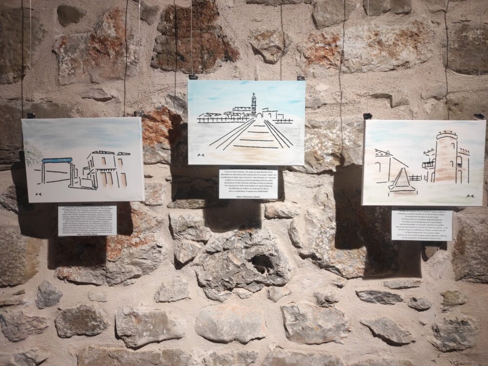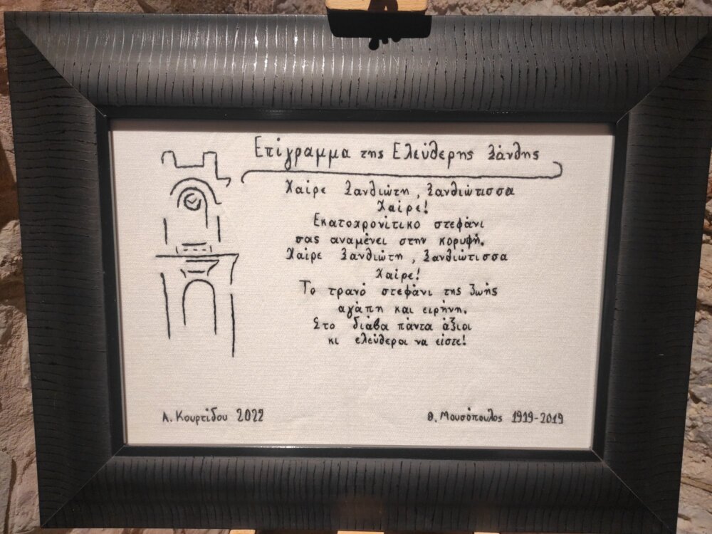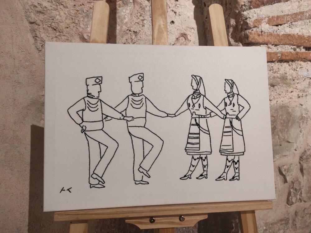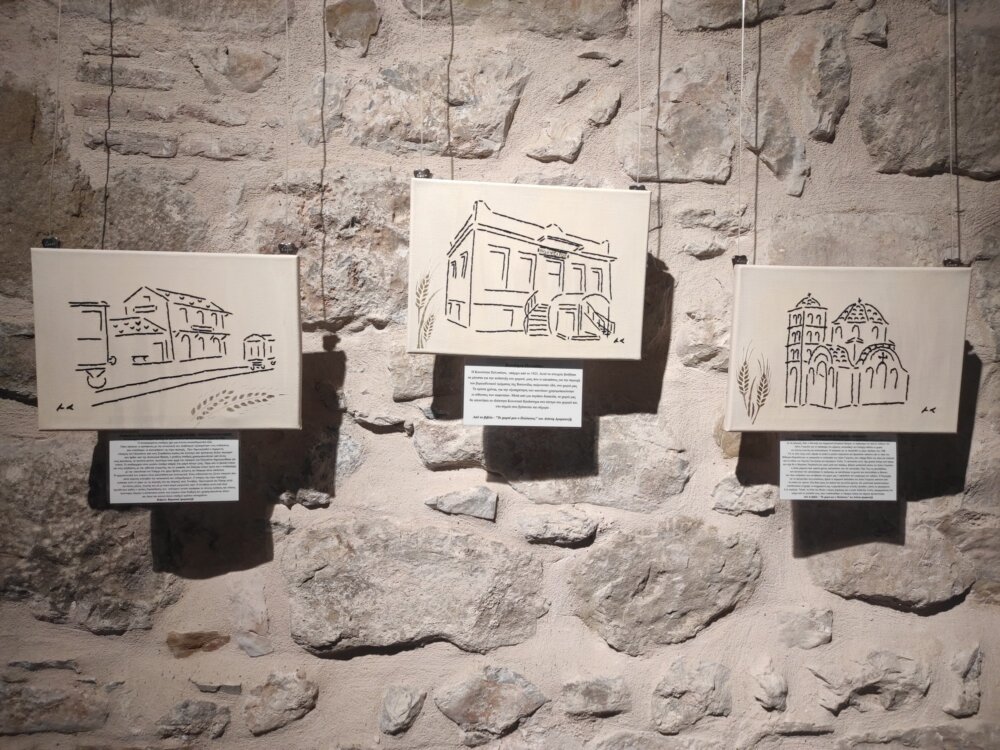 Μέσα από την βελόνα και την κλωστή, η Κουρτίδου ζωντανεύει πετρόχτιστα αρχοντικά, πλακόστρωτα σοκάκια και επιβλητικές κατοικίες, δημιουργώντας έναν διάλογο μεταξύ των δύο πόλεων. Η κεντητική τέχνη συναντά την ζωγραφική, οδηγώντας τον θεατή σε ένα ονειρικό ταξίδι γεμάτο χρώμα και υφή.