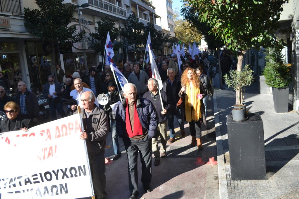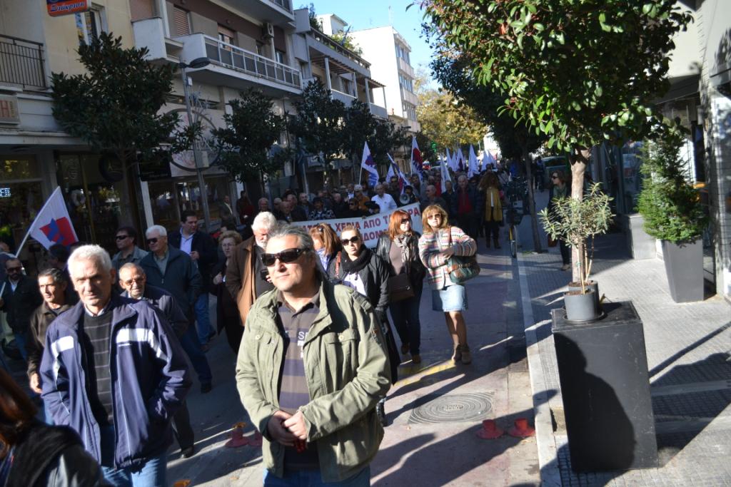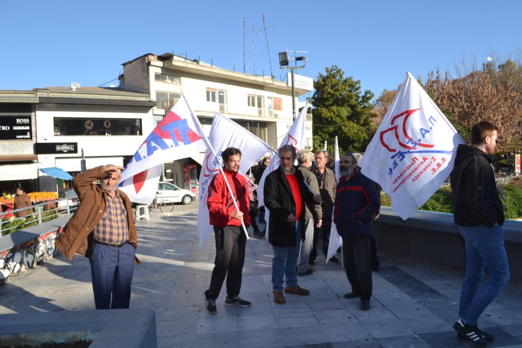Στην συγκέντρωση που πραγματοποιήθηκε στην Κεντρική Πλατεία επισημάνθηκε πως: «Η συγκυβέρνηση ΣΥΡΙΖΑ – ΑΝΕΛ, διατηρώντας όλους τους νόμους και τις πολιτικές αποφάσεις των προηγούμενων κυβερνήσεων ΝΔ – ΠΑΣΟΚ, προετοιμάζει και νέα βάρβαρα μέτρα, δήθεν απαραίτητα για τη σωτηρία του ασφαλιστικού συστήματος.