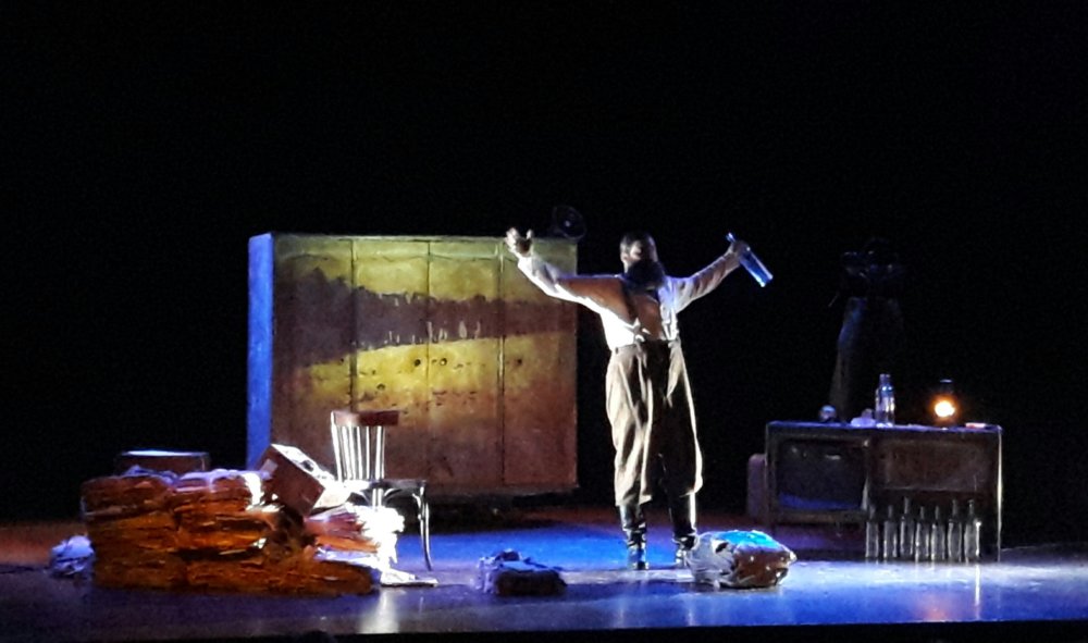 Η σκηνοθεσία είναι του Βασίλη Μπισμπίκη και η ερμηνεία του Τάσου Σωτηράκη. Η παράσταση δόθηκε στο πλαίσιο των 100 χρόνων ζωής και δράσης του ΚΚΕ και για τα 74 χρόνια από την απελευθέρωση των Τρικάλων (18 Οκτώβρη 1944) όταν οι δυνάμεις του ΕΛΑΣ εκδίωξαν τους Γερμανούς ναζί.
