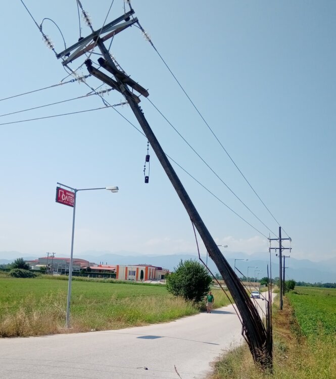 Η κολόνα έπεσε στο παρακείμενο χαντάκι όταν μηχάνημα έργου των υπηρεσιών του δήμου Τρικάλων καθάριζε τα χόρτα και έκοψε το καλώδιο στήριξης με αποτέλεσμα να πέσει η μια κολόνα και να σπάσει μια δεύτερη που δεν άντεξε τοπ βάρος των καλωδίων.