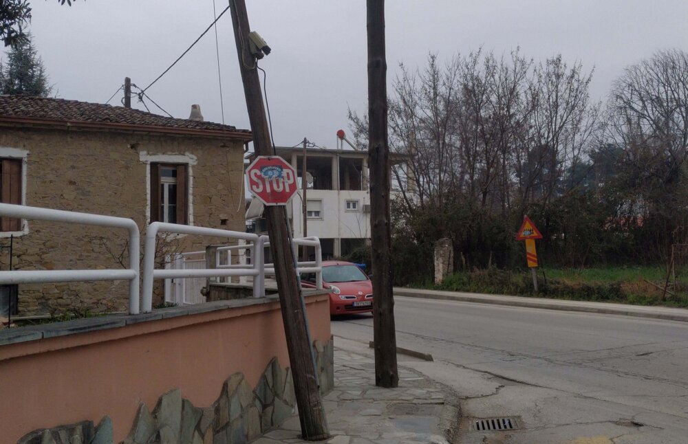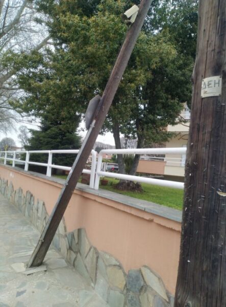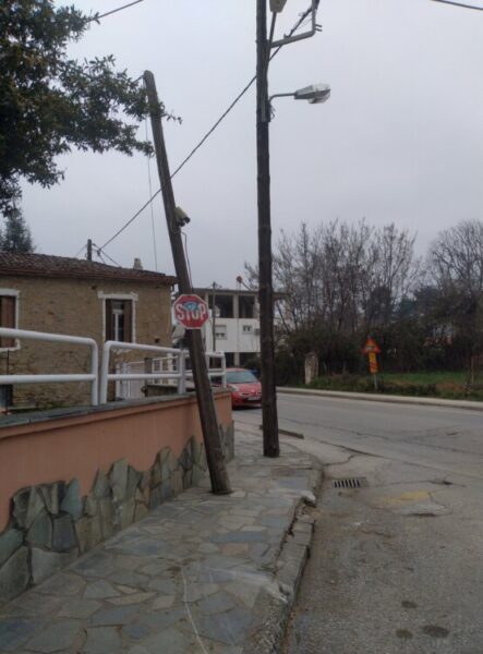 Ετοιμη να πέσει είναι κολόνα του ΟΤΕ (μάλλον λόγω του σεισμού), στην είσοδο του πάρκου Ματσόπουλου η οποία πλέον στηρίζεται μόνο… στα κάγκελα του διπλανού σπιτιού. Μάλιστα πάνω στην κολόνα υπάρχει και κάμερα του δήμου…. που όποιος την παρακολουθεί σίγουρα βλέπει τον κόσμο στραβά…