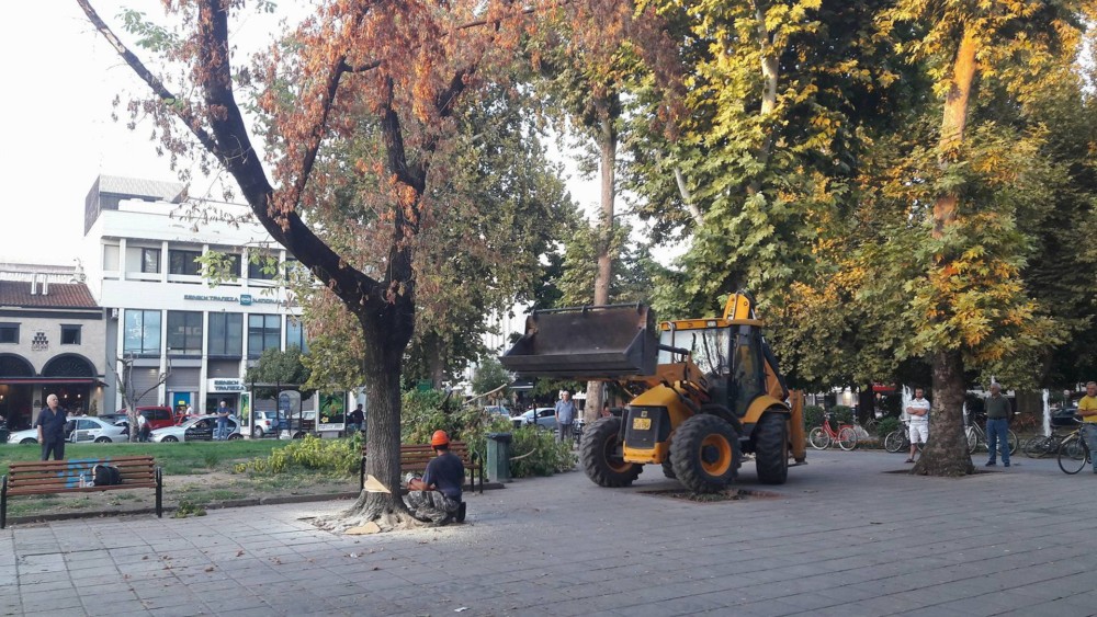 Η απόφαση αυτή δεν ήταν ξαφνική. Προηγήθηκε η πτώση ενός πλατάνου στην κεντρική πλατεία από το ξαφνικό, απίστευτης ορμής μπουρίνι στα τέλη Αυγούστου του 2016. Ακολούθησε η πτώση δεύτερου πλατάνου εν αιθρία, στις αρχές Σεπτεμβρίου 2017. Εγινε νωρίτερα και κοπή ενός ξερού δέντρου στην ίδια αυτή πλατεία. Οπότε, επίσης ομόφωνα – και αυτό έχει επίσης τη σημασία του – το τμήμα Πρασίνου και Κηποτεχνίας της Δ/νσης Πρασίνου και Τοπικής Οικονομίας του Δήμου Τρικκαίων, αποτελούμενο από 5 γεωπόνους και τεχνολόγους γεωπόνους – επιστήμονες υπαλλήλους του Δήμου, προέβησαν σε εισήγηση για κοπή 11 συνολικώς δέντρων στην κεντρική πλατεία. Απόφαση εντελώς ασυνήθιστη για αυτή την υπηρεσία, η οποία δίνει άδεια για κοπή δέντρων…. Σχεδόν ποτέ! Αλλά, όπως εξηγήθηκε στη σχετική εισήγηση και στο πλήθος των ερωτήσεων των δημοτικών συμβούλων, για τα δέντρα αυτά η κατάσταση είναι μη αναστρέψιμη: γερνούν πεθαίνοντας, είπε χαρακτηριστικά η προϊστάμενη της Διεύθυνσης κ. Μαρία Ντότα. Και η φράση της εισήγησης μετά τον τελευταίο έλεγχο, μόλις πριν 7 ημέρες (7 Σεπτεμβρίου 2017) ήταν η εξής: «Σε όλες τις δενδροδόχους παρατηρήθηκε εκτεταμένη σήψη των ριζών, έντονη δυσοσμία, σε αρκετά σημεία το ξύλο ήταν μαλακό, εύθρυπτο και σπογγώδες. Σε κάποια δένδρα παρατηρήθηκε ότι το κέντρο του κορμού στη βάση τους ήταν έντονα μαύρο, ενώ σε άλλα έντονα κόκκινο, συμπτώματα που μας δείχνουν προσβολές των δένδρων από ασθένειες που ευθύνονται για τις σηψιρριζίες».