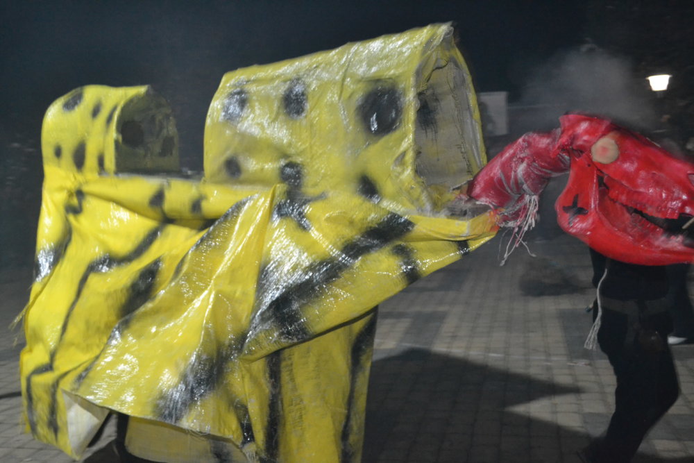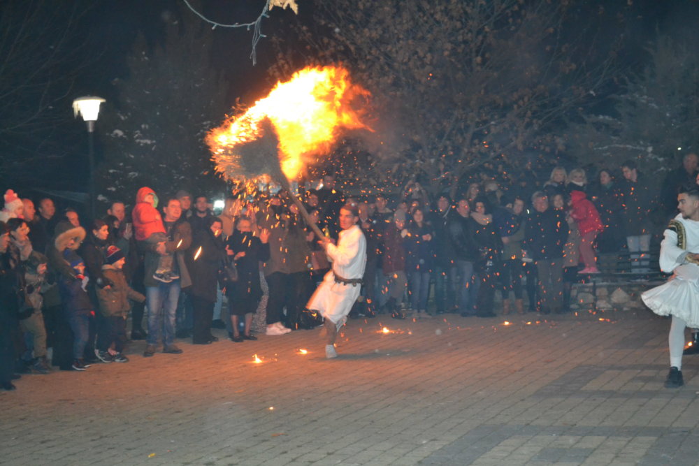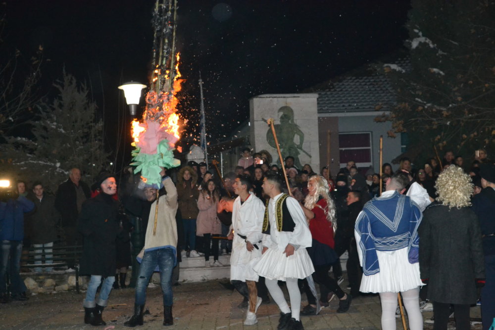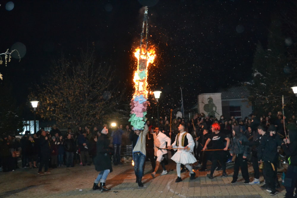Εκεί, το καβούκι παραδόθηκε στις φλόγες από τη σκούπα του «διαβόλου», ξορκίζοντας έτσι το κακό που έφεραν στο πέρασμα τους οι καλικάντζαροι.