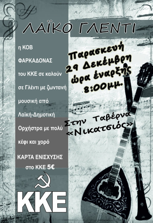 Λαϊκό Γλέντι του ΚΚΕ στο δήμο Φαρκαδόνας την Παρασκευή 29 Δεκέμβρη