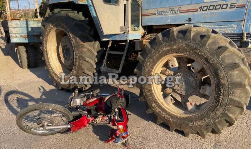 Σοβαρό τροχαίο με σύγκρουση δικύκλου με τρακτέρ σε διασταύρωση μέσα στο Σταυρό Λαμίας, σημειώθηκε το απόγευμα του Σαββάτου γύρω στις 17:15.
