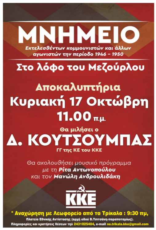 για την τοποθέτηση του Μνημείου που αποφάσισε προς τιμήν τους το ΚΚΕ.