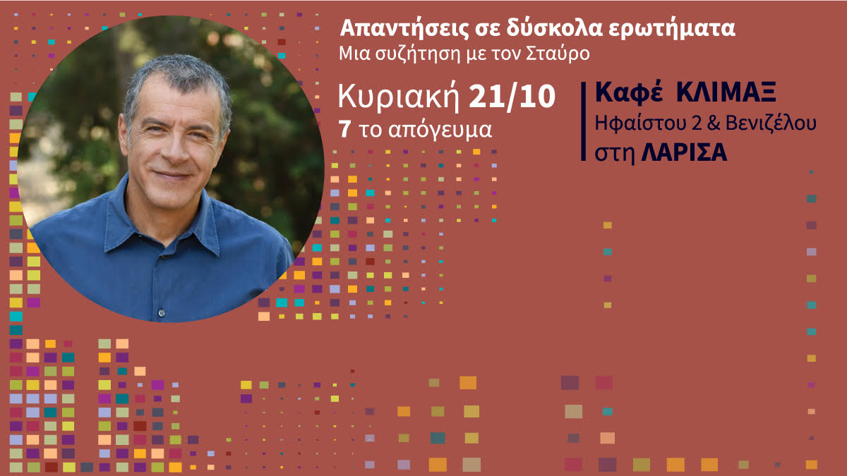 Στην πόλη της Λάρισας θα παρευρεθεί ο Σταύρος Θεοδωράκης στα πλαίσια περιοδείας που θα πραγματοποιήσει στην Θεσσαλία.