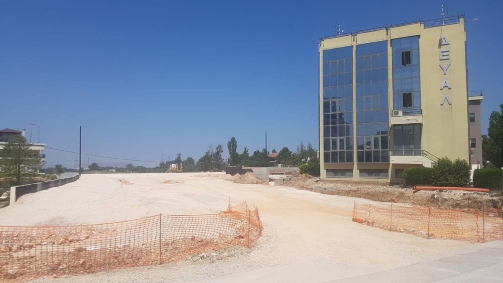 Όπως μπορείτε να δείτε για να γίνει ο περιφερειακός δρόμος εκεί «θυσιάστηκε» το άνετο πάρκινγκ που υπήρχε έξω από την ΔΕΥΑΛ αλλά και ένα τμήμα του περιβάλλοντα χώρου. Μάλιστα γίνεται για τις ανάγκες του έργου νέα τσιμεντένια περίφραξη.