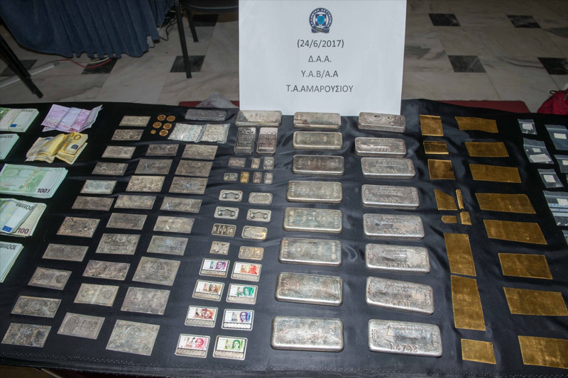 Έτσι από πολλές έρευνες σε χώρους και σε τριώροφο κτίσμα στο Πάτημα Χαλανδρίου, που συνδέεται με τον 43χρονο συλληφθέντα, βρέθηκαν και κατασχέθηκαν τα 700 και πλέον κιλά χρυσαφικά, κοσμήματα και άλλα τιμαλφή, στα οποία αναλυτικότερα περιλαμβάνονται: