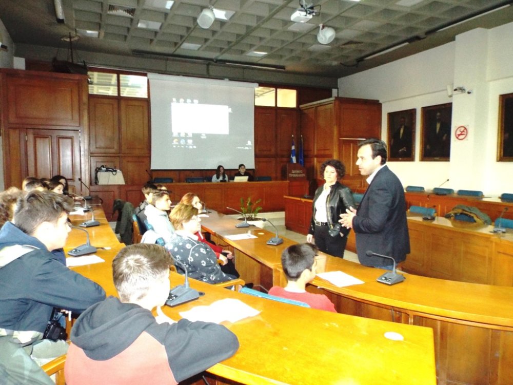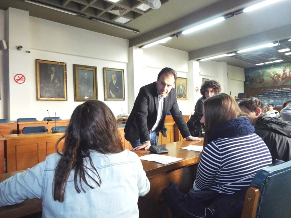 «Ο ρόλος ενός δεκαπενταμελούς μαθητικού συμβουλίου στην πράξη», ήταν το σημερινό μάθημα που διδάχτηκε το Δημαρχείο Τρικκαίων. Εκεί, στην αίθουσα Δημοτικού Συμβουλίου, ο Δήμαρχος κ. Δημήτρης Παπαστεργίου υποδέχθηκε το πρωί της Πέμπτης 23 Νοεμβρίου 2017, τα μέλη του 15μελούς συμβουλίου του 1ου Γυμνασίου Τρικάλων. Συνοδευόμενοι από τη διευθύντρια κ. Δήμητρα Αδάμου και την καθηγήτρια Κοινωνιολογίας κ. Στέλλα Σιώμου, παρουσίασαν σε ηλεκτρονική μορφή στον Δήμαρχο, τα θέματα που αιτούνται λύσεων.