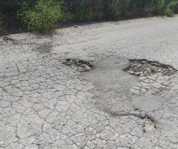Ο δρόμος είναι γεμάτος λακκούβες, που σε πολλές φορές, έχουν βάθος 20 εκ. και πλάτος μισό μέτρο.