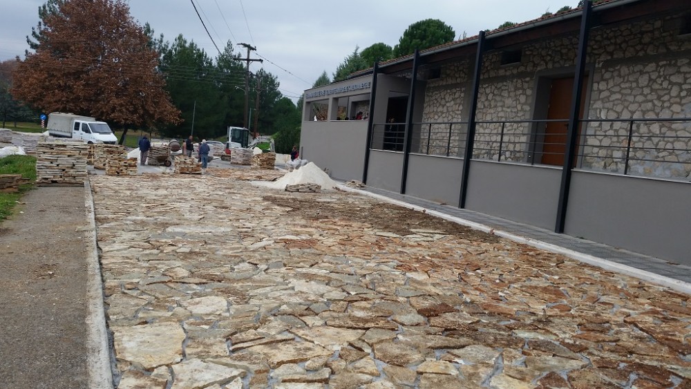 Εργασίες Πλακόστρωσης έξω από το Μουσείο της Θεόπετρας